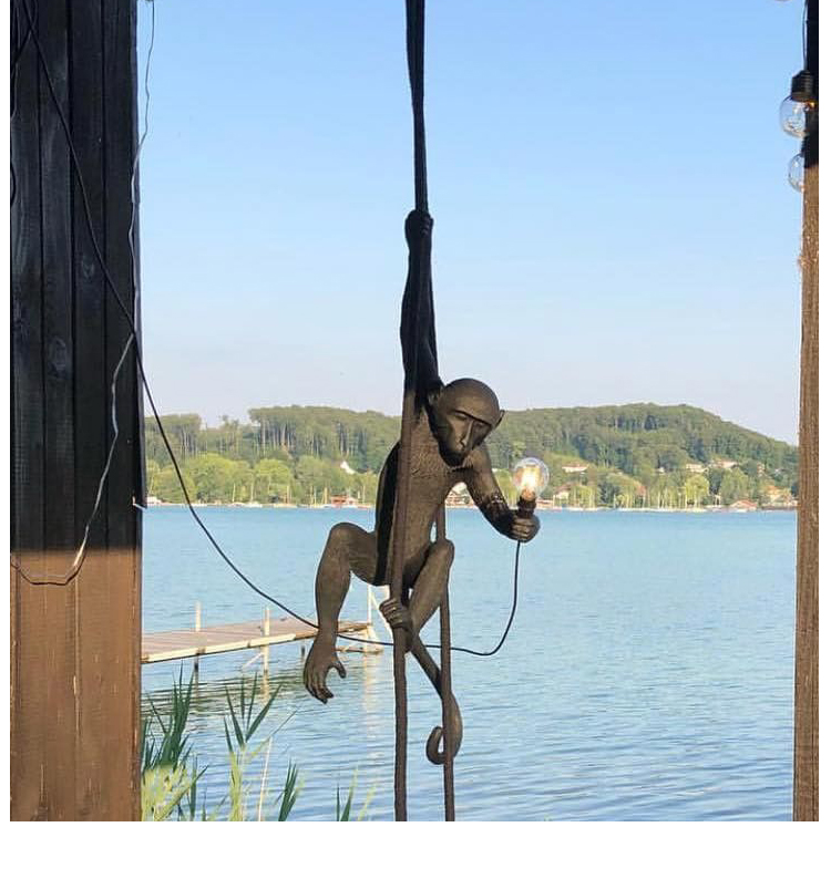 这款猴灯由树脂制成,手工完成,描绘了一只猴子在三个不同的位置,一边抓着一个LED灯泡,一边探索周围的环境,一种新的、替代的照明方式。