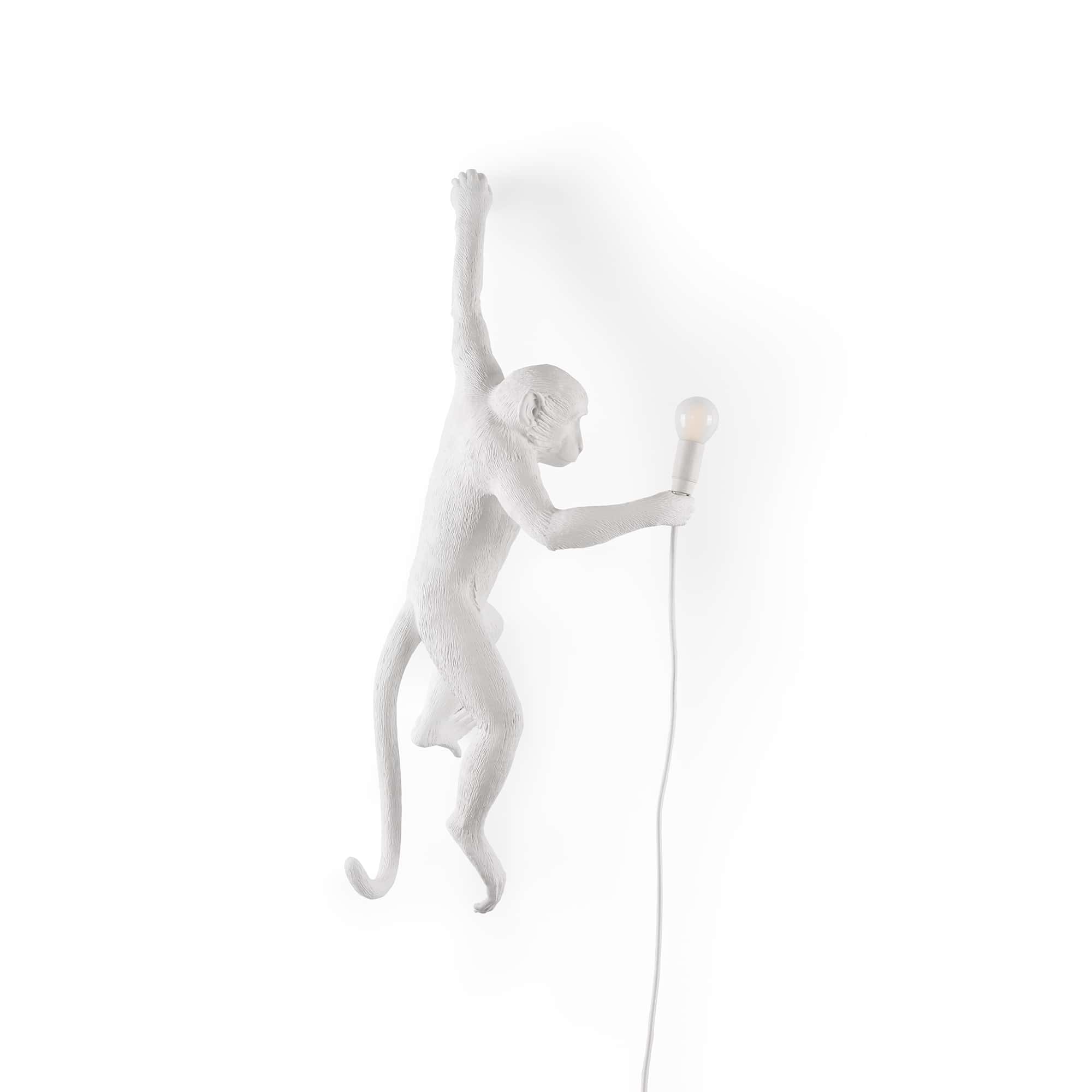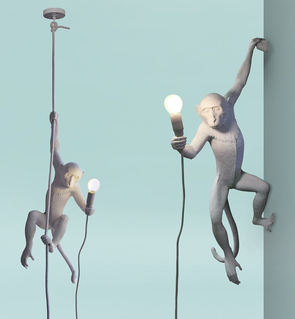 这款猴灯由树脂制成,手工完成,描绘了一只猴子在三个不同的位置,一边抓着一个LED灯泡,一边探索周围的环境:一种新的、替代的照明方式。猴子很容易让人联想到人类:这就是为什么我经常在我的雕塑作品中提到它们。在Seletti的版本中,他们溜进了我们的房子,觉得他们是在偷那些灯泡,其实是在为我们服务。