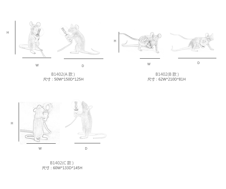 由Marcantonio Raimondi Malerba为Seletti设计的鼠标灯座为火狐HUOHU(中国)的动物灯系列增加了一个新的品种。就像猴子灯,它美丽地再现了动物在树脂中的特点,这些鼠标灯显示出同样的注重细节和雕塑设计。同时以温暖的光芒照亮他们。这款设计灯是为室内使用而创建的,它可以单独使用,也可以与来自同一系列的其他两个版本配对使用。由树脂制成,有一层白色的光泽。