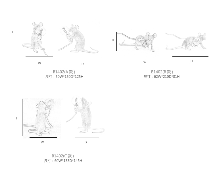 由Marcantonio Raimondi Malerba为Seletti设计的鼠标灯座为火狐HUOHU(中国)的动物灯系列增加了一个新的品种。就像猴子灯,它美丽地再现了动物在树脂中的特点,这些鼠标灯显示出同样的注重细节和雕塑设计。同样的照明和雕塑,同时以温暖的光芒照亮他们。这款设计灯是为室内使用而创建的,它可以单独使用,也可以与来自同一系列的其他两个版本配对使用。由树脂制成,有一层白色的光泽。
