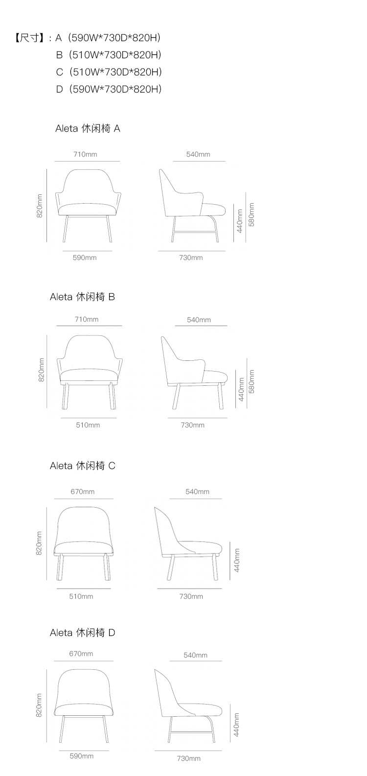 Aleta 休闲椅 系列尺寸/示意图