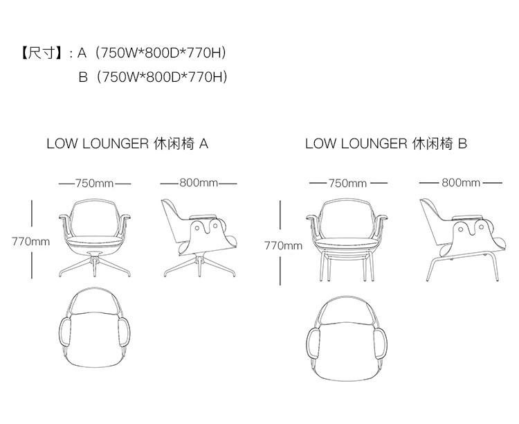 LOW LOUNGER 休闲椅 系列尺寸/示意图