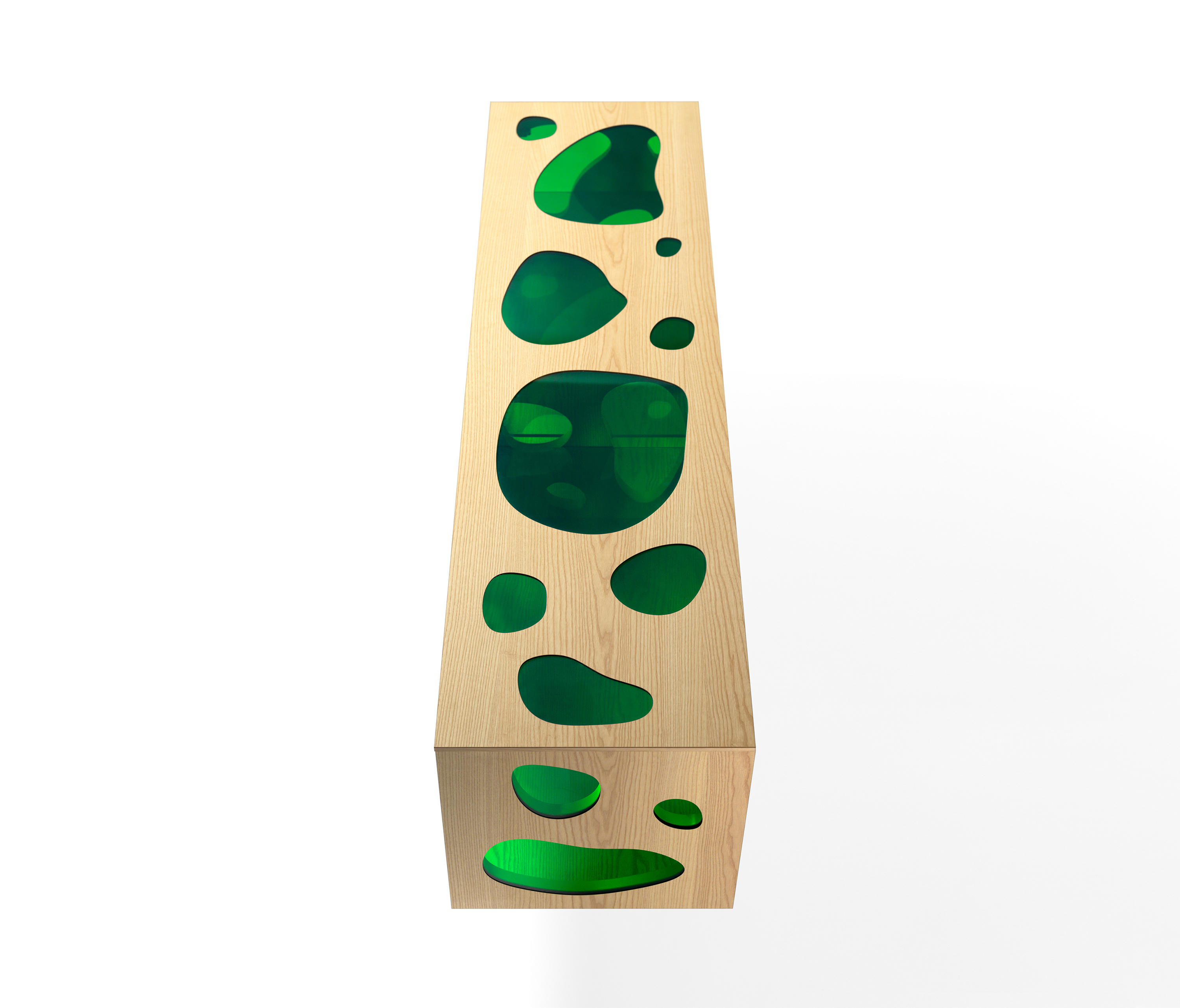 Aquário-带有门的木制餐边柜。 坎帕纳兄弟(Campana Brothers)设计的新橱柜Aquário。“我们与BD Barcelona Design的艺术总监Ramónúbeda保持联系已经有几年了。我们讨论了已经成熟并成为我们制作的自助餐的创意。费尔南多·坎帕纳(Fernando Campana)解释说:“灵感来自水族馆的想法,以创造出这件作品。” 温暖和寒冷。它已经成为我们设计语言的一部分。我也想玩对重的想法。玻璃的轻便和木头的体积。第一个的非物质性和第二个的物理性。” Fernando补充说:“餐边柜由木材,白蜡木或松木以及彩色玻璃门制成。