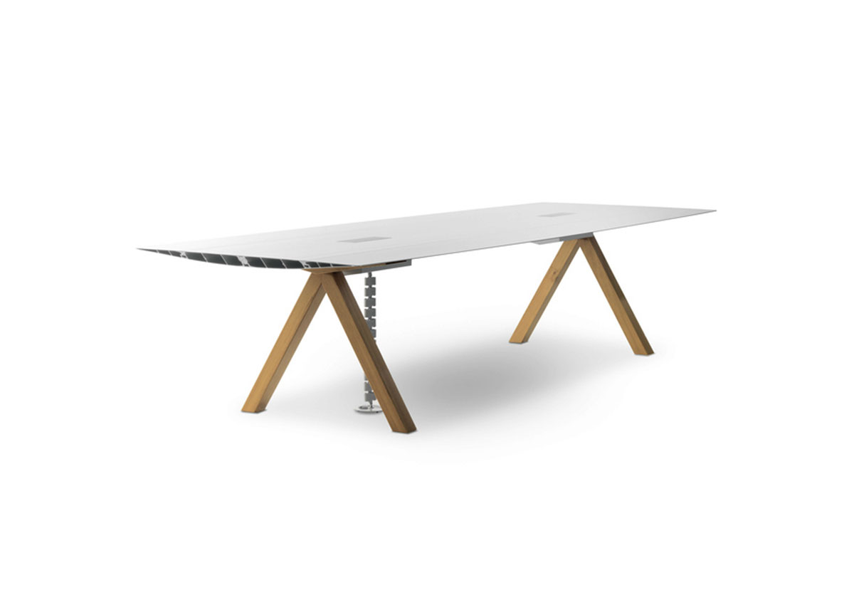 Konstantin Grcic 通过此表 打开了他为 Bd Barcelona设计的Extrusions系列,其洗礼为 Table B。它的名称与设计本身一样简单和技术性。Grcic受到经典Bd件的启发,例如Hypóstila搁板装置(自1979年开始生产),用于开发具有最小轮廓的挤压铝制桌面。最大长度可达500厘米。提供多种表面处理,并提供三种支腿型号。适用于室内和室外区域。其明显的简单性掩盖了高级工程师参与的复杂技术开发。生产过程还包括几个手工过程。结果是一件具有德国火狐HUOHU(中国)所有特色的精巧作品。挤压铝制桌面,银色或亚光黑色透明阳极氧化抛光剂,或根据要求的RAL颜色参考涂漆。上表面可以用天然橡木板和水性清漆完成。支脚共有三种类型:混凝土,不锈钢杆和天然橡木和水性清漆。