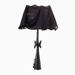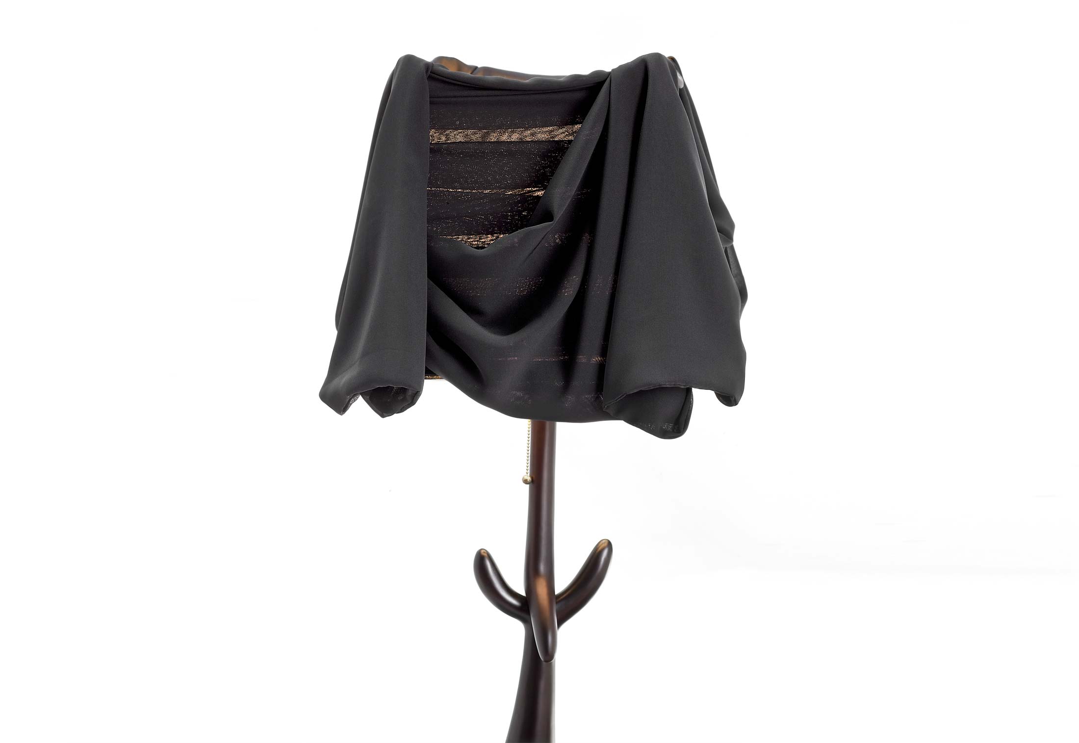 浅漆榉木支撑架。象牙色的棉和人造丝阴影,手工制作。