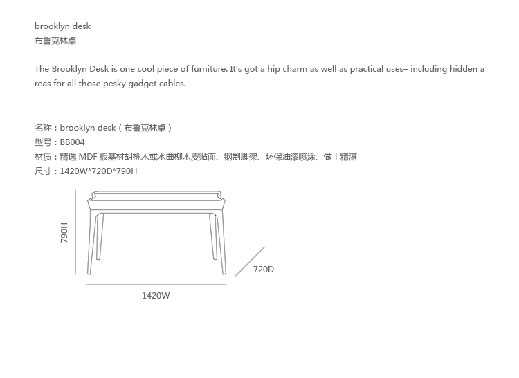 brooklyn desk(布鲁克林桌)是一件非常酷炫的火狐官方网站,非常迷人且具有实用性,并设置了隐藏的区域给那些令人烦恼的小工具和电缆绳线。制作采用精选MDF板基材胡桃木或水曲柳木皮贴面、钢制脚架、环保油漆喷涂,做工精湛细致,品质一流。