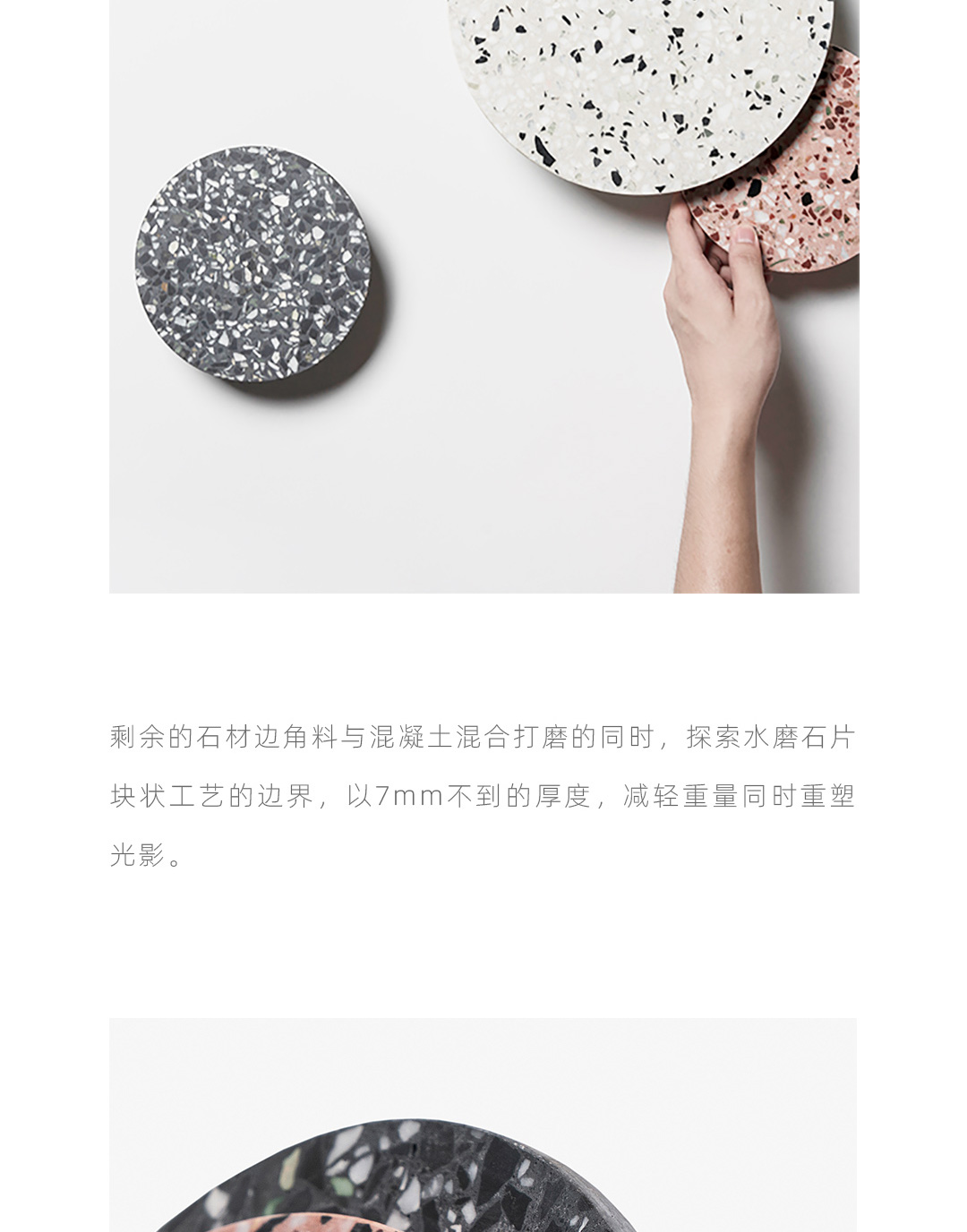 以材质再生为基本手段的水磨石系列,将陶瓷废渣再生成简洁形态的日常性火狐官方网站,以衍生产业的形式回归到大众层面的使用中。 中国佛山,这片拥有全球最大最成熟的陶瓷产业链和产业集群的建筑陶瓷工厂的土地,承载着每年400万吨陶瓷废弃物带来的环境污染。 以材质再生融入日常,不仅是激发商业价值的大胆尝试,是环保理念的日常化实践,更是对自我尊严的基本坚守和追求,我们探寻陶瓷跨越地域局限的一种当代突破!