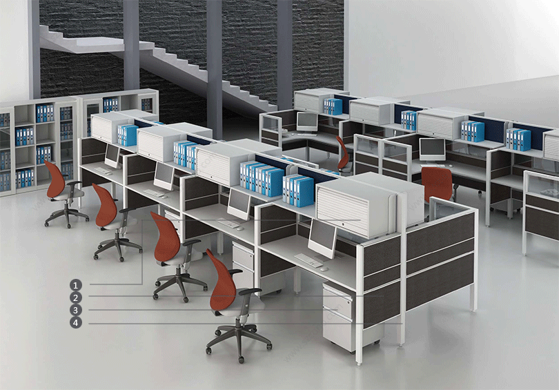 | 1、台面储物台柜,更合理更充分利用空间; | 2、桌面不落地吸音隔板,多种选择:板材、玻璃、亚克力、颜色多选。 |