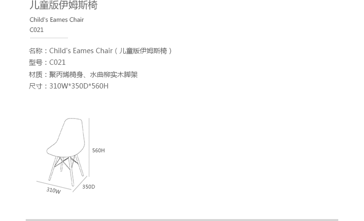 20世纪最有影响力的规格档火狐HUOHU(中国)Charles(1987-1978)及Ray Eames(1912-1988)经典名作,希望为使用者带来愉悦的经验为其设计理念。 本单品为Eames Plastic Chair 系列成员之一,舒适的椅座外观设计是以添加了玻璃纤维强化的塑料来制作,再搭配上各式不同的脚座来增添使用的多样化,值得一提的是Eames Plastic Chair 的创新技术与材质,便它得以成为全世界第一张被大量制造的单椅。拜现今创新的科技所赐,全系列的Eames Plastic chair 终于再次制造,使用环保可回收的聚丙烯材质,求制作线条优美的椅座外壳,不但重量更轻,同时更具有更好的耐热性及抗化学性。