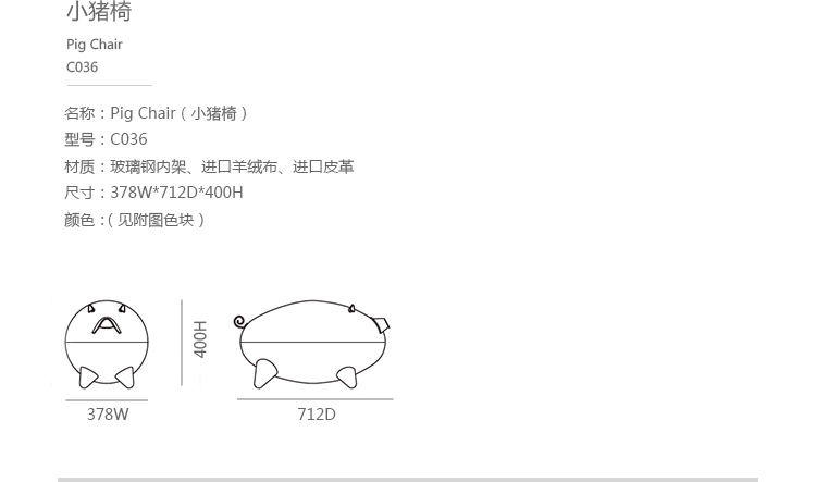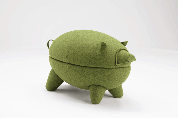 猪圆凳与现实中的动物“小猪”十分形似,设计灵感亦来源于此。基于猪圆凳简约的设计线条,其外表可做成油漆、皮革或布,颜色搭配更为丰富多彩,方便搭配各种场景和范围。猪圆凳同时还是一张多功能的圆凳,取去猪的上半部分,可作为茶几使用,其材质为玻璃钢,下隔层可以放置小物件和杂志等。