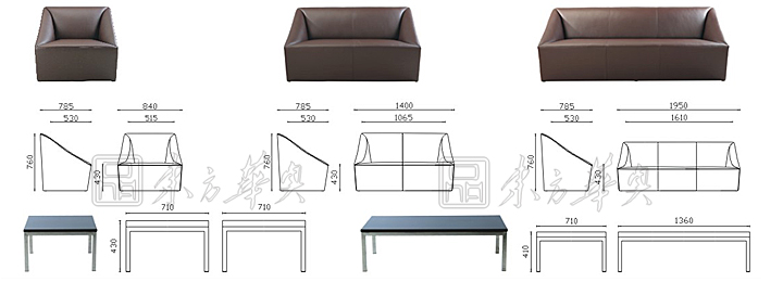 ※ 上图为单位沙发,二人位沙发,三人位沙发的组合图片,已经结构尺寸图,还有配套的茶几展示。