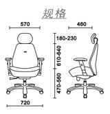 底盘---多段式可定位同步倾仰机构(多角度锁定倾仰,可根据体重调节靠背松紧度) ,靠背与座垫之间的移动角度比例为3:1,-令使用者腿部与背部更平衡