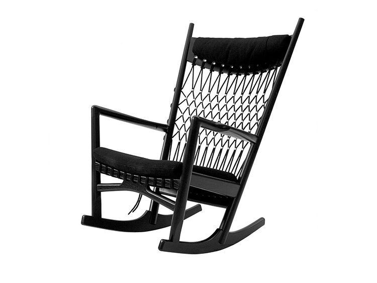 Rocking Chair(摇椅)是大师Hans J. Wegner设计的众多摇椅中的经典之作。摇椅具有简洁的线条,精准的的人体工学结构,是Hans J. Wegner在1944年为身怀六甲的妻子设计,扶手前端微微向外展开,是为让妻子方便起身。实木制成,轻便耐用,简约单纯,仍于潮流中立于不败之地,为Hans J. Wegner最受欢迎的经典作品之一。我们已经能从中感受到圈椅的影子。摇椅水曲柳制作,坐垫麻布软布(内部填充优质海绵),棉绳编织(有白色,黑色,棕红色可选)。