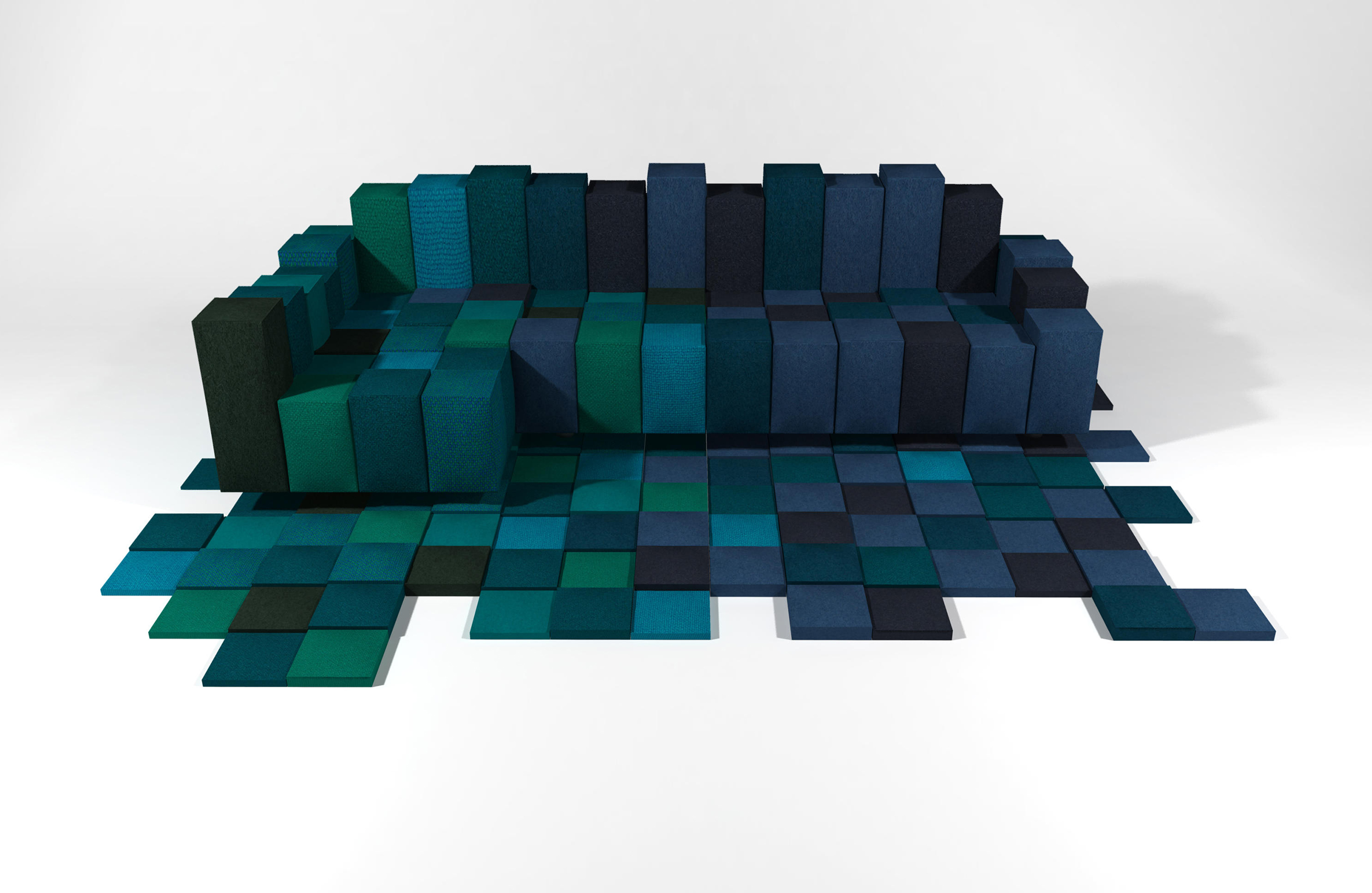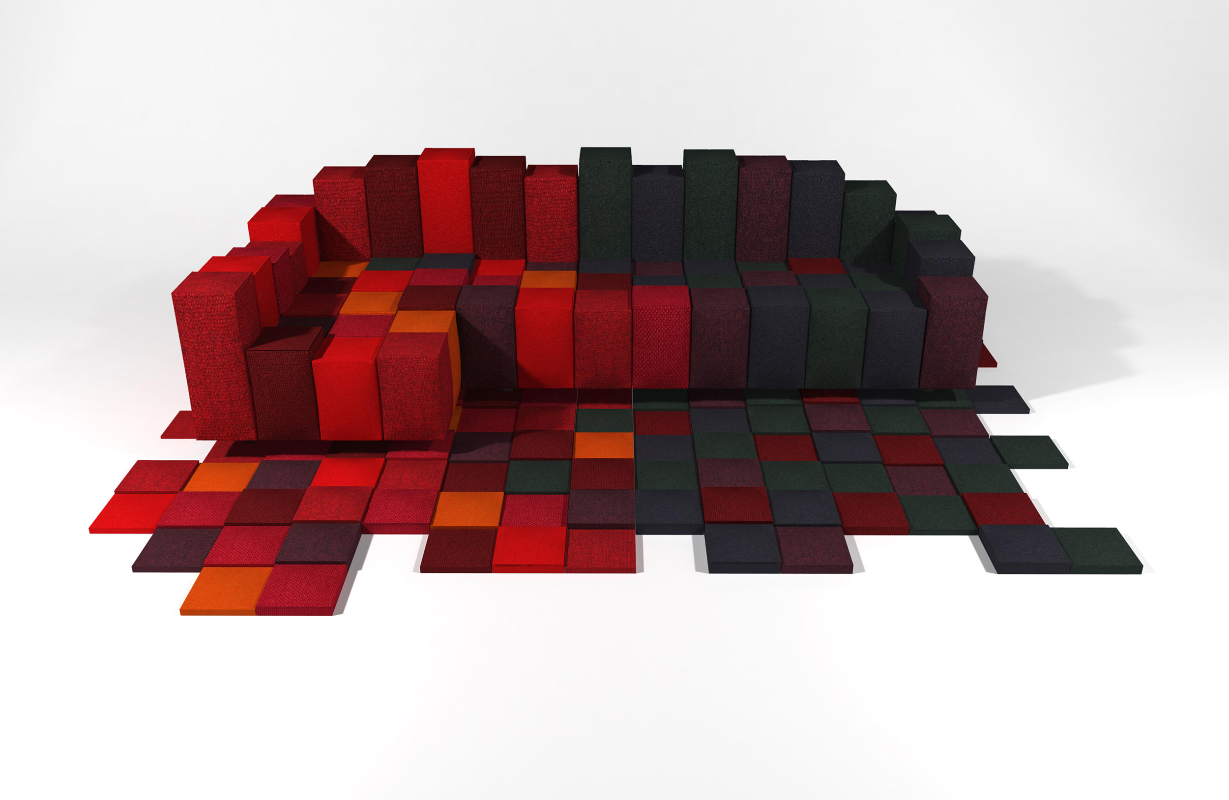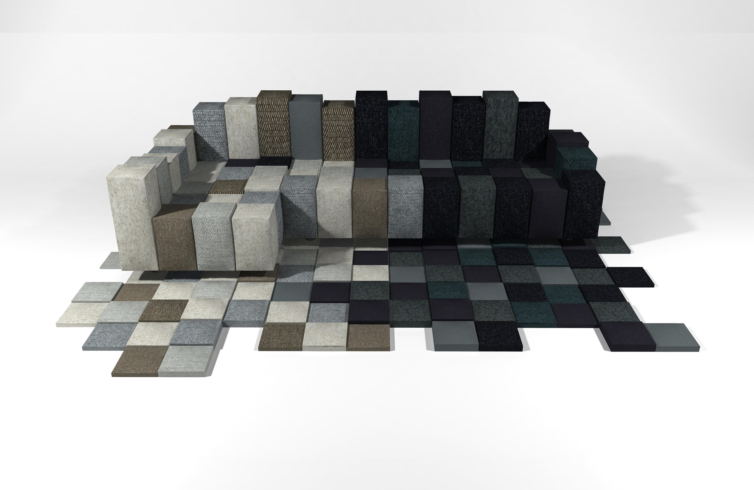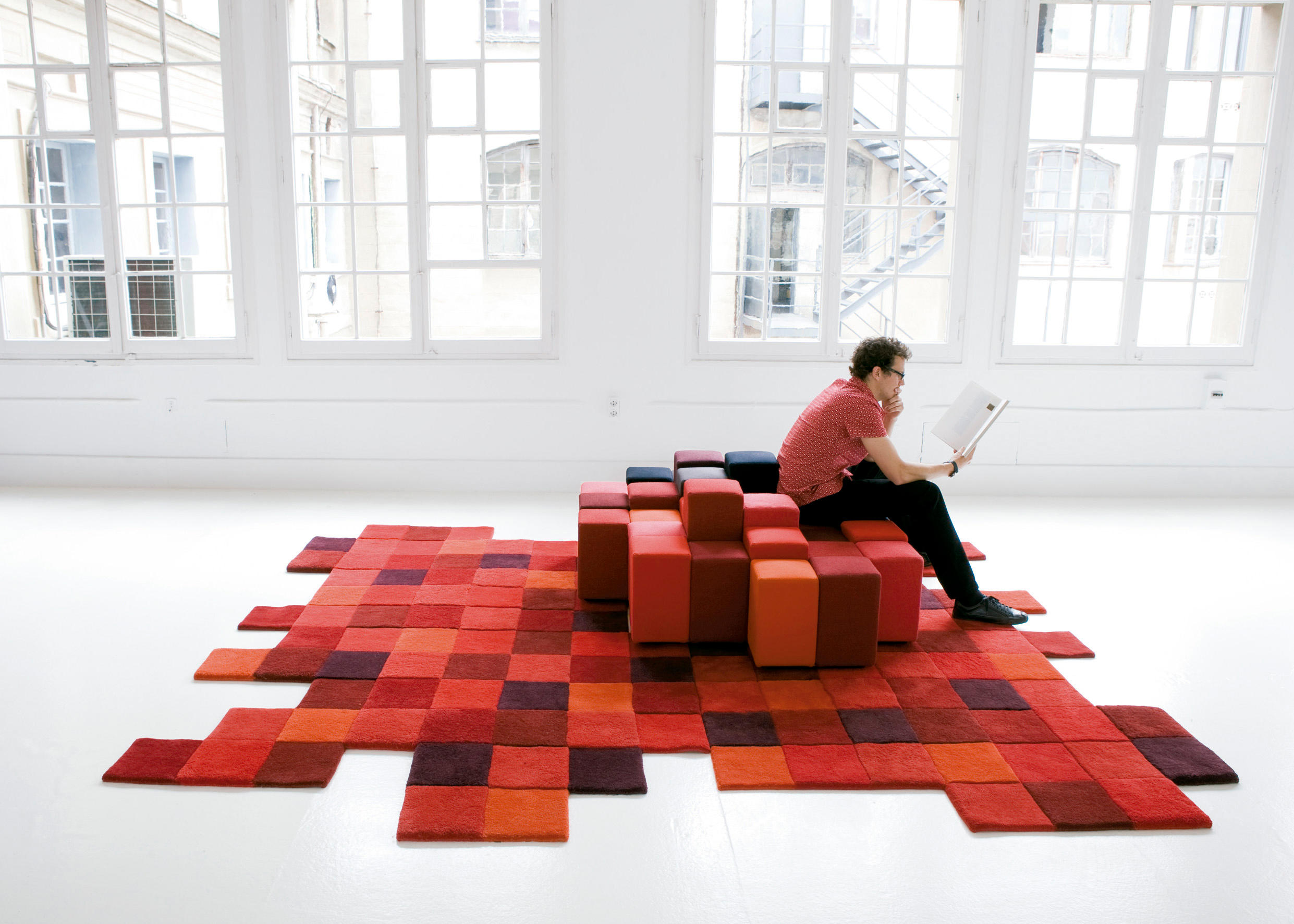 低分辨率由Ron Arad设计,是由地毯和沙发两件作品组合而成,运用的都是图像的低分辨率元素。