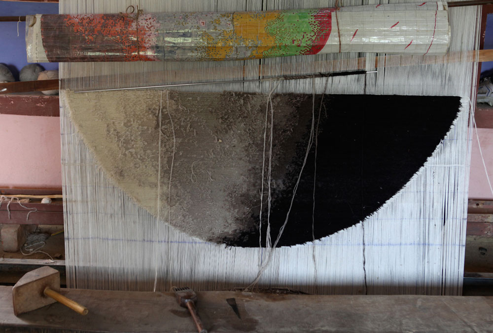把月亮放在你的脚边。这个梦幻般的作品是80年代的重版,它来自于奥斯卡·托斯卡斯的La Tierra和La Luna地毯。
