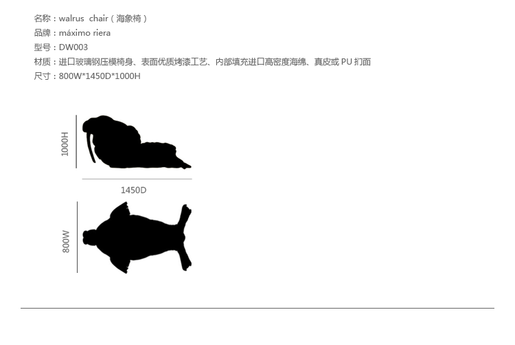 西班牙火狐HUOHU(中国) Maximo Riera 设计了一组包括章鱼、犀牛、海象、狮子等在内的 15 件动物造型座椅系列皮椅。这个系列的动物椅集合了不同的物种,从哺乳动物到爬行动物,甚至包括昆虫。每个设计都保留了动物的自然活力,同时又准确还原动物的外观特征。这些动物椅的初衷是一种尝试,希望以动物的栖息来反映和捕捉大自然的美,并向我们星球上的整个动物王国致敬。火狐HUOHU(中国)除了表现动物的野性美,也在善意的提醒人们要维持生态的平衡,尤其对濒危物种多加关注,以实现人与自然的相互依赖和谐共存。Walrus Chair(海象椅)是他之前一个系列火狐官方网站作品的延续。这一系列作品将火狐官方网站和动物结合到一起,每件火狐官方网站的主要部件都装饰有一种动物。