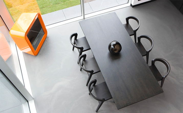Elegant massive wooden table with an unique contemporary design,rounded edges at the table top and refined table legs.