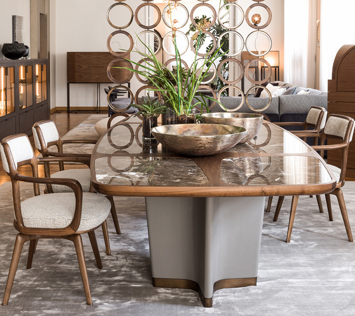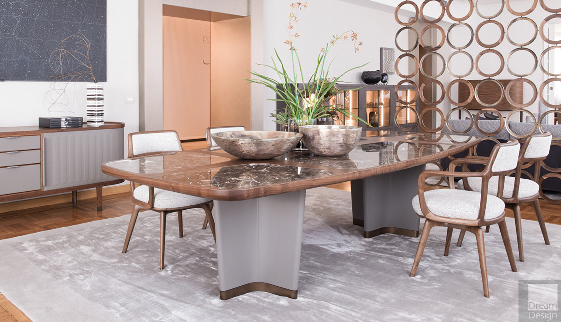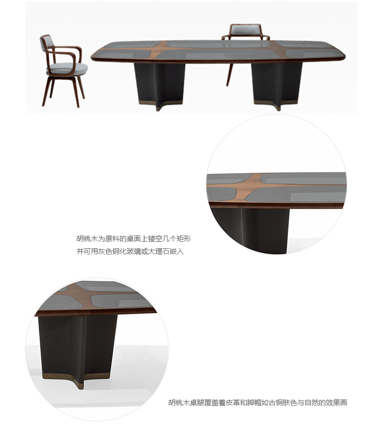 顶部可用在canaletta核桃或插入在以下版本:青铜或灰色钢化水晶玻璃或大理石如下:黄金calacatta Portoro,布朗zebrino或天鹅绒。