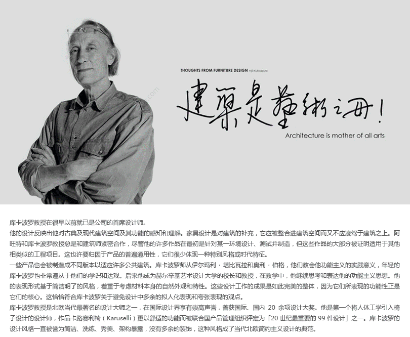 在1986年,维利迪奥沙发应运而生,库卡波罗的设计让沙发的材料很容易变换。这是为大空间休息室和等候区设计的,而单独的沙发,也当然适合于较小的环境,如家庭或办公室。