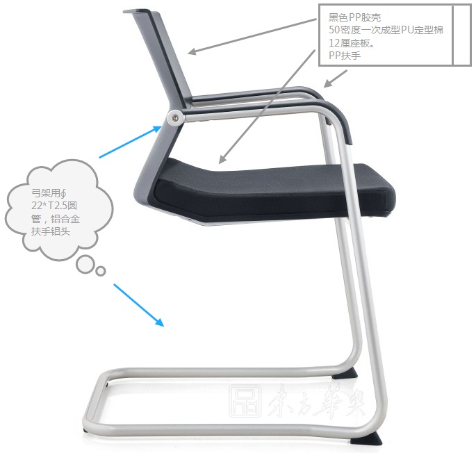 B:PP扶手,弓架用∮22*T2.5圆管,铝合金扶手铝头,全部喷755色,用华