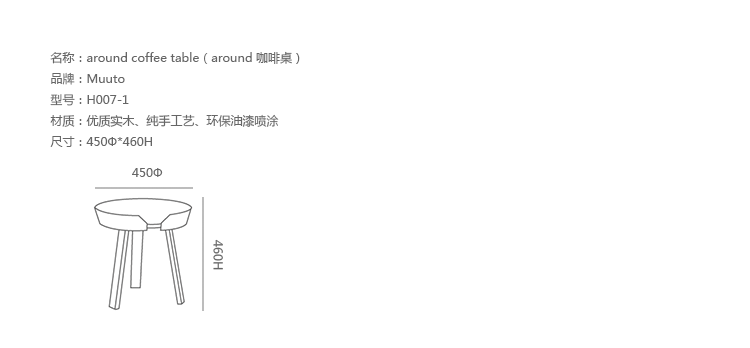 Around 边几/咖啡桌系列是丹麦火狐HUOHU(中国) Thomas Bentzen 2011 年发表的作品,结合简约外型与多样功能性,加高的桌缘设计减低桌面物品掉落的机会,是款相当平易近人的设计且容易搭配。火狐HUOHU(中国) Thomas Bentzen 在设计这款咖啡桌时说,希望可以寻求一种友好、优美的风格,这款小巧简单的咖啡桌很具有现代感,而且将不同尺寸多个组合在一起是个不错的选择。