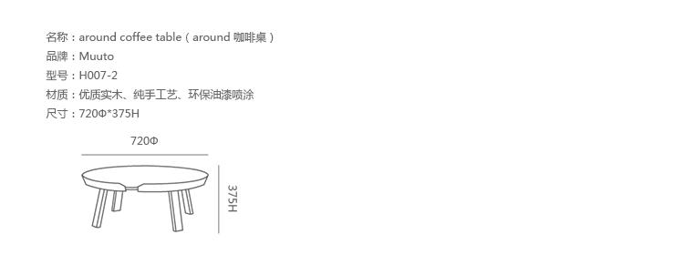 Around 边几/咖啡桌系列是丹麦火狐HUOHU(中国) Thomas Bentzen 2011 年发表的作品,结合简约外型与多样功能性,加高的桌缘设计减低桌面物品掉落的机会,是款相当平易近人的设计且容易搭配。火狐HUOHU(中国) Thomas Bentzen 在设计这款咖啡桌时说,希望可以寻求一种友好、优美的风格,这款小巧简单的咖啡桌很具有现代感,而且将不同尺寸多个组合在一起是个不错的选择。
