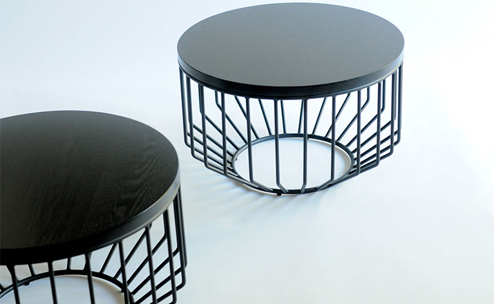 "Blending sloping angles and taut lengths of bent metal are a modern interpretation of the wiry idea initially conceived by Warren Platner.The series is made up of a suite of tables,side tables and benches and fitted with luxurious solid wood,glass,or upholstered tops.By choosing the upholstered top the complement table can serve as an ottoman."