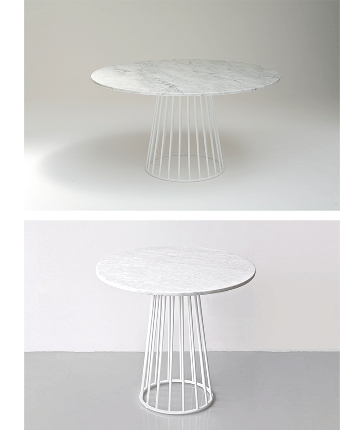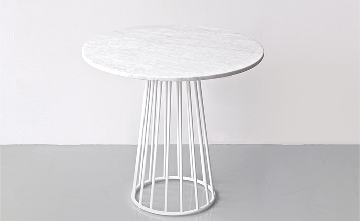 "Tapered lengths of metal meet with intention in a modern interpretation of the wiry idea initially conceived by Warren Platner.This compact cafe table with grand presence is suitable to be used in multiples or in smaller dining areas."