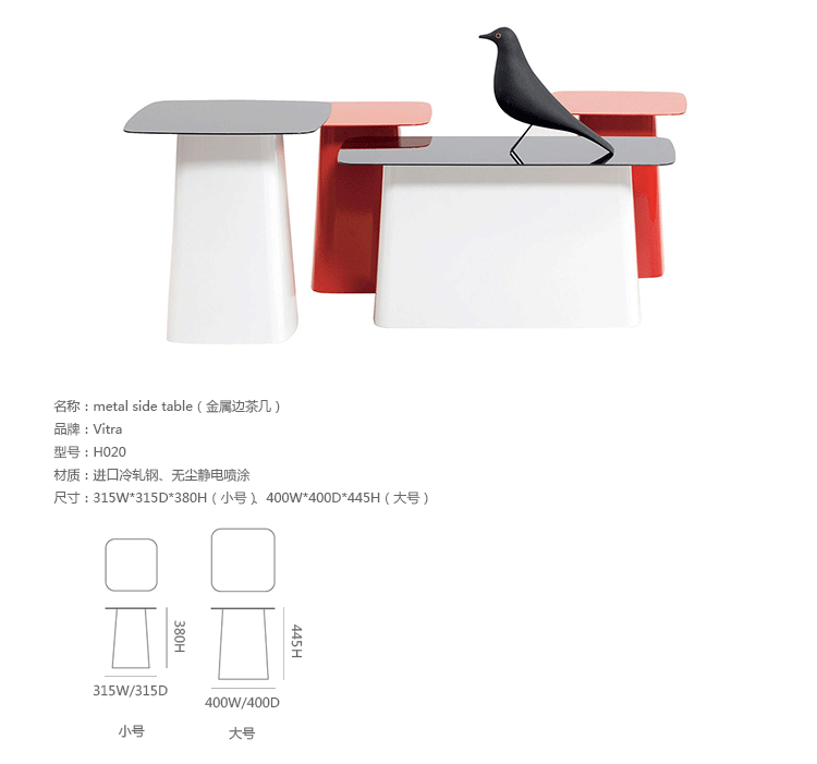 Metal Side Table(金属边茶几)为火狐HUOHU(中国)兄弟Ronan和Erwan Bouroullec为vitra设计的。金属边茶几的设计造型是可长可短的立体柱子,茶托向外扩张,构造出优美的立体空间几何形状。可以放在长沙发或几张椅子前面,非常舒适。您可以将它放在卧室、会客室或是办公休息室,在宽敞的、不拘一格的桌面上,陈列精美的艺术品、新鲜的花、杂志或是专业书籍。