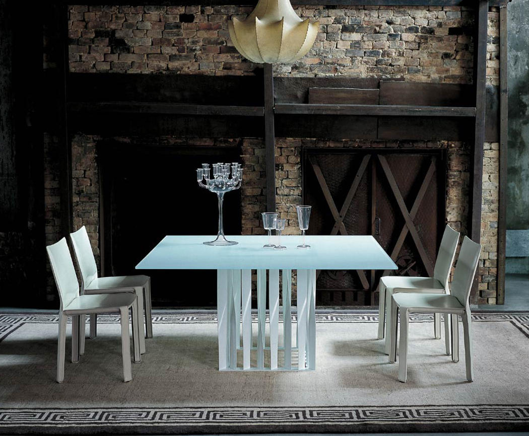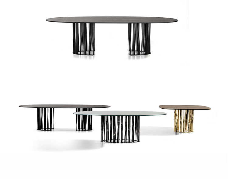 不锈钢电镀折叠而成独特脚架——大胆挑战由薄金属垂直条、微扭纵轴形成的桌几支撑,为家庭创造一个独特的景观