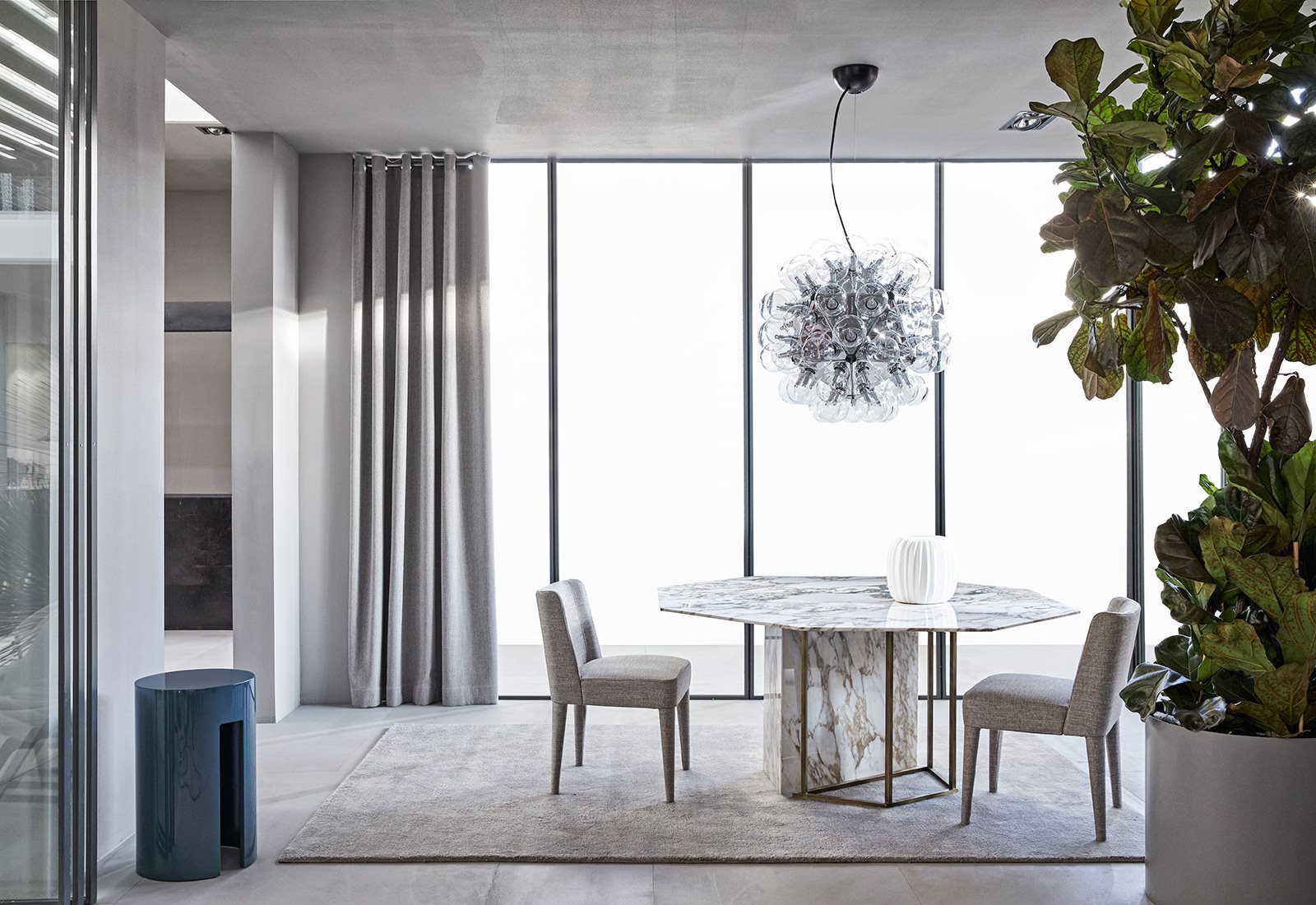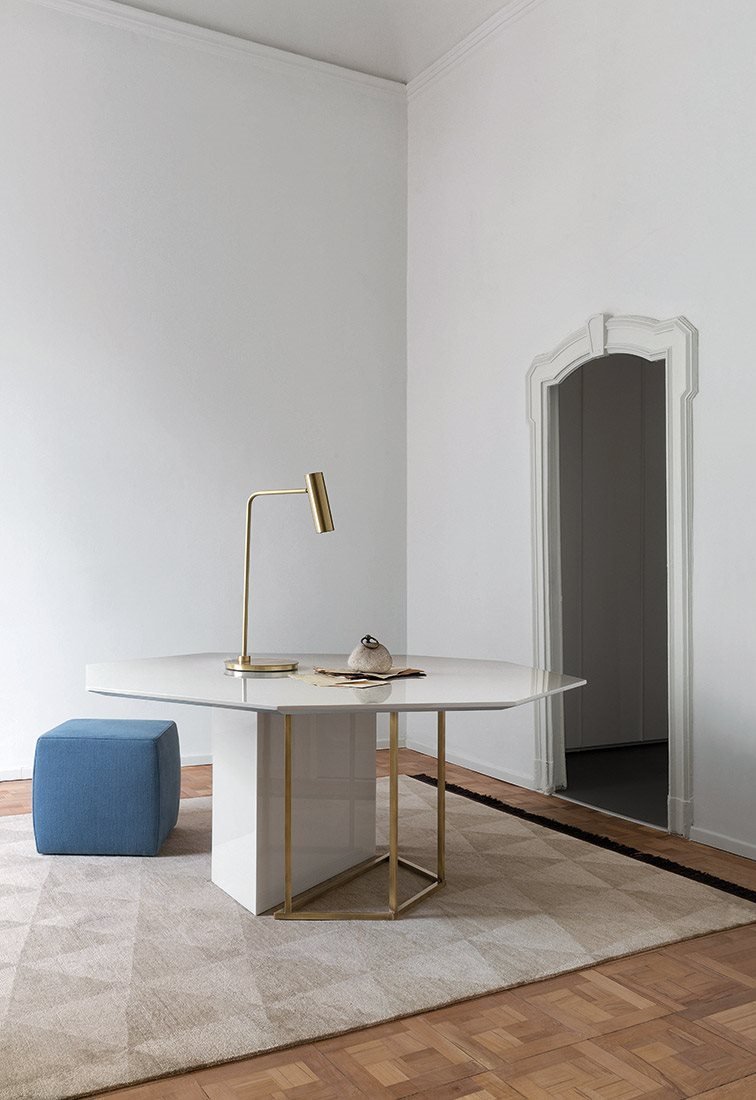 光结构化在黑色金属基地或古铜色的黄铜完成匹配固体体积覆盖着各种大理石、木材或漆完成,自由结合不同形状的顶部给生命一个相互作用的固体和空洞。