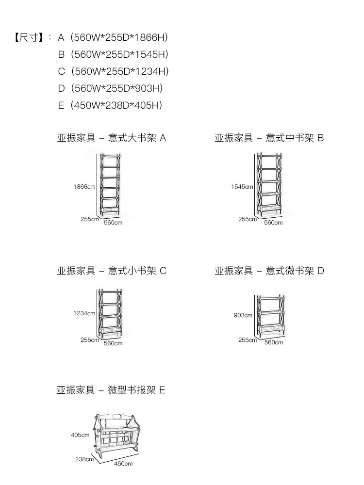 亚振火狐官方网站 - 意式书架 产品尺寸/示意图