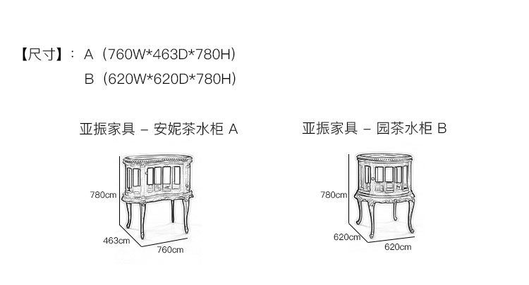 亚振火狐官方网站 - 安妮茶水柜 产品尺寸/示意图