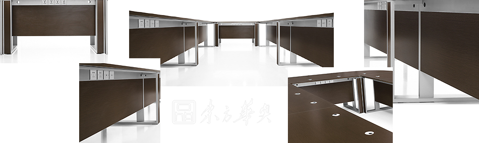 ※ 上图为会议桌解剖图,展示会议桌的每个细节,别致的钢木结合脚架,整齐的走线槽,拼接组合成不同的款型!