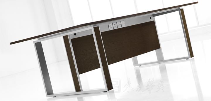 ※ 上图为会议桌的侧部展示图,既传统又时尚,厚厚的桌面由同样厚度的拉板连接,增强台桌体的稳固!