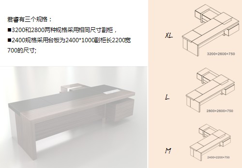 君睿配套系列大班台CG-JRQ3268详细说明: