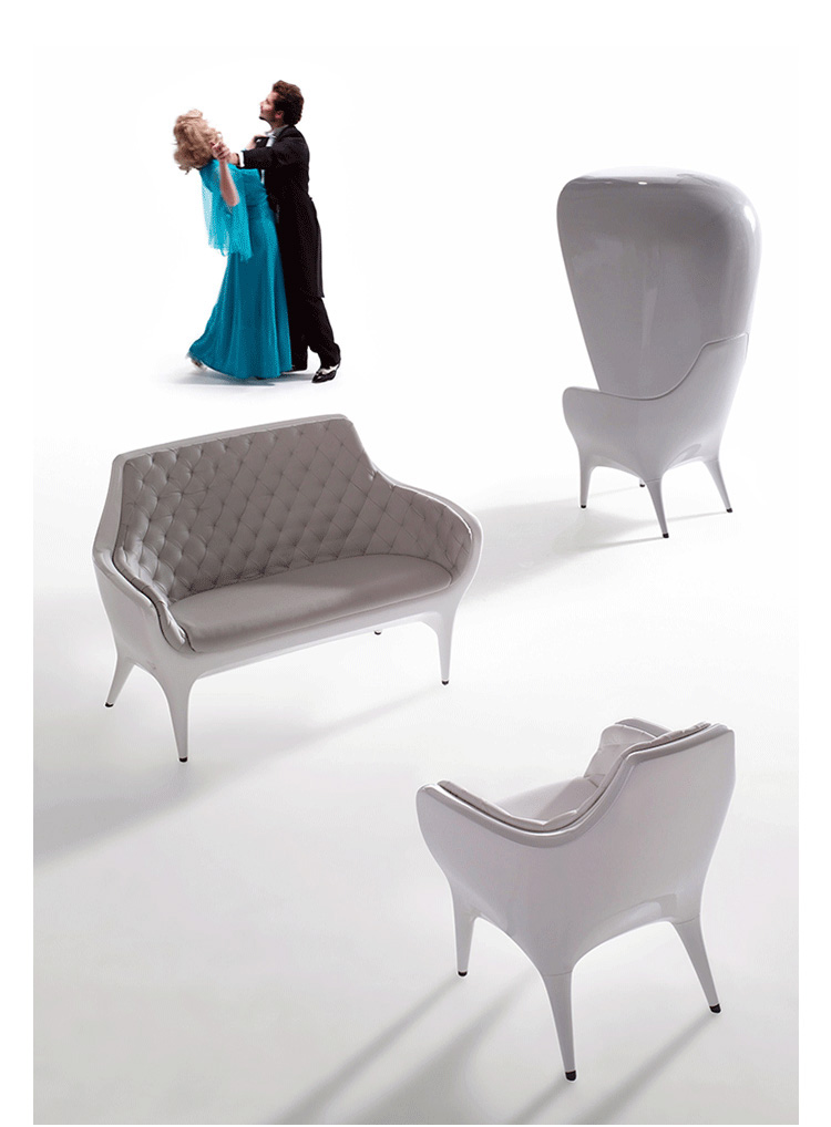 Showtime Poltronas 沙發系列是 Jaime Hayon 受邀與西班牙頂尖設計火狐官方网站公司 BD Barcelona 合作推出的精品級藝術火狐官方网站系列,靈感來自於米高梅歌舞劇場景,從單人沙發、雙人沙發 發展到最具趣味性的圓頂高背沙發椅,讓人坐進去就像是身處於古代歐洲戲院的包廂中,而外面的人只能看到一雙伸出的腿,充滿戲劇性的設計,不僅多了一份神秘感,,更令人不禁莞爾。