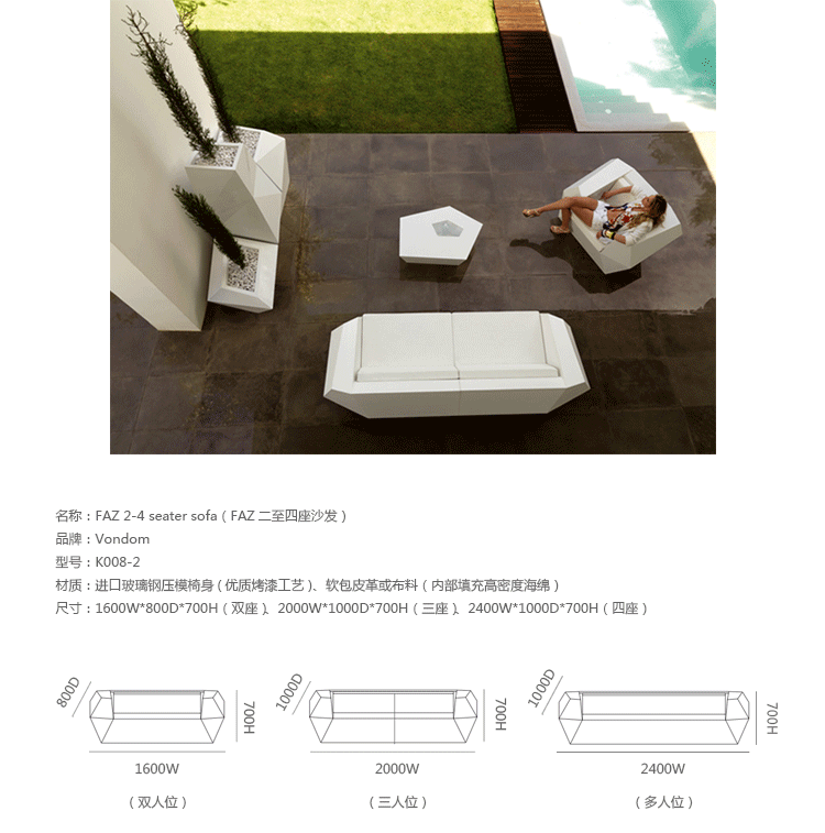 FAZ是西班牙著名建筑师Ramon Esteve为VONDOM公司设计的组合火狐官方网站和花盆系列。Ramon Esteve是和谐的,平静的和永恒的建筑师,创造了一个矿物质的,表现力丰富的形状,;令FAZ跟我们的家或其他环境完美融合。气氛,包围的结果是材料和光线元素幸福的组合,其独特的察觉是气混合体。他们的灵魂,VONDOM,他的独家性是他原材料的品质,允许,甚至在最苛求的环境使用。FAZ的组合性允许消费者灵活的组合他们的火狐官方网站和花盆,来适应他们的风格,但并没有失去这火狐官方网站系列的和谐。FAZ,由辅助桌子,扶手椅子,组合沙发和咖啡桌子,还有三个不同比例的花盆组成。这个系列还配套了最优质的户外坐垫。FAZ,他的结果是表现本质,包含复杂性和密度性,直到极端细节的杰作,其目的是创造一个我们向往的居住地。