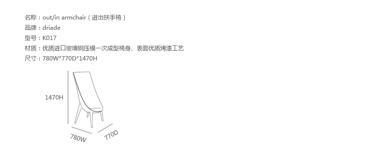 "代表个人化贵族生活的居家生活品牌非Driade莫属,Driade的每件火狐官方网站皆具有原创性与独特性,充分彰显收藏者的品味与眼光,其独一无二的空间主体性,既凸显火狐官方网站本体,又能凝聚并调和空间中所有元素,使其能成为任何设计风格之最佳点缀。Driade极力展现其品牌在家居市场扩展的雄心。每一件商品都是当今知名火狐HUOHU(中国)的创意产生的。Driade自1968年创立以来,不断以提升居家生活美学为目标,致力于持续改革全系列火狐官方网站,四十年来的自我鞭策,造就Driade今日引领世界火狐官方网站设计潮流的领导地位。由鬼才设计大师Philippe Starck与Driade合作的Out/In高背座椅,展现极具现代感的设计理念。令人玩味的造型,让居家生活增添更多趣味,绝佳的舒适支撑度,又让人十分自在放松。德利雅德于美感品味的精准掌握,以及对生活趣味的创意发想,无疑是德利雅德在设计领域竖立鲜明旗帜的主要原因。Out/In高背座椅有黑,白,银灰等颜色可供选择。