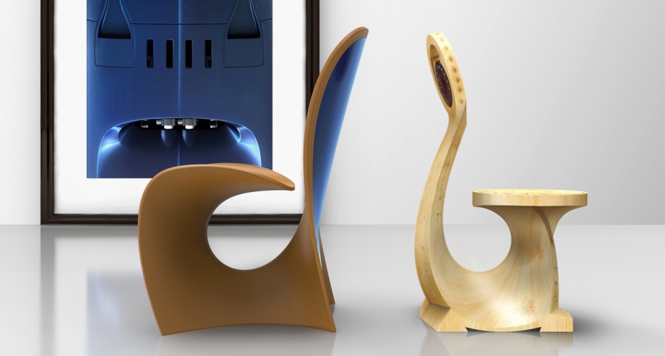 眼镜蛇座椅重现了早期的版本,它是在1902年由Carlo Bugatti设计并完成的。这把椅子是用干邑皮革制成的,有一种蓝色罗亚尔色的碳纤维框架。在蓝色皮革管道和EB字母组合中也有装饰。