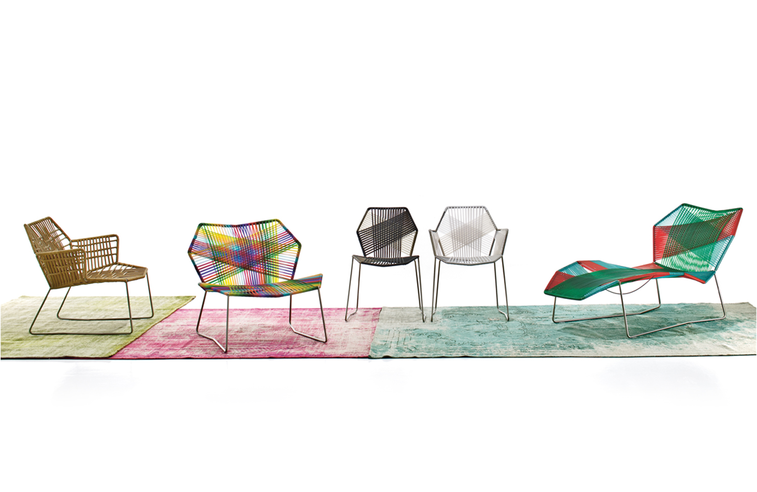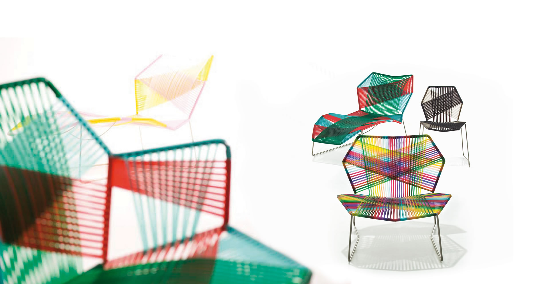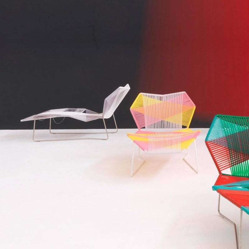 安蒂博迪(Antibodi)的钢管框架成为火狐HUOHU(中国)用于创意改造的起点。框架被包裹和变换,座位根据所使用不同颜色的材料呈现不同的个性。两到三种颜色的线条以螺旋的方式将钢管包裹起来,形成了一种有趣的颜色复杂的设计。