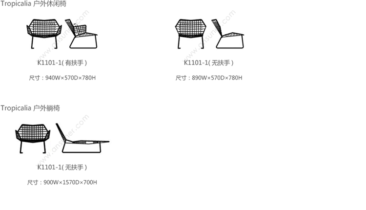 Tropicalia-Fauteuil avec accoudoirs 系列尺寸/示意图
