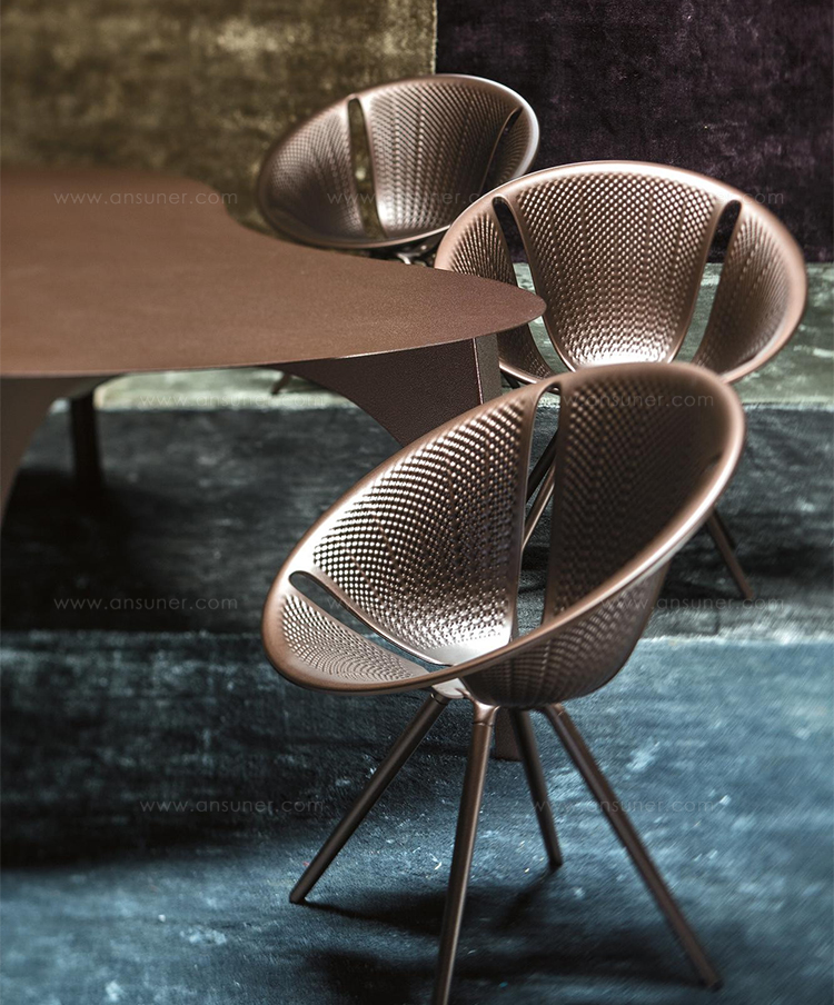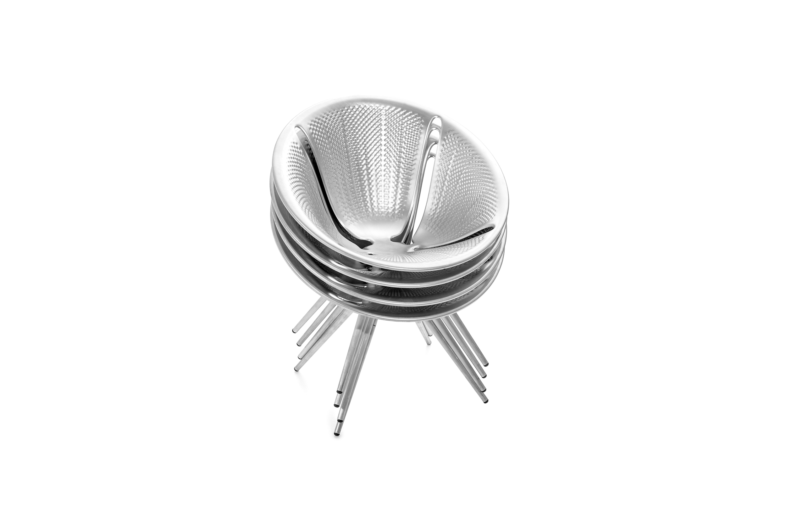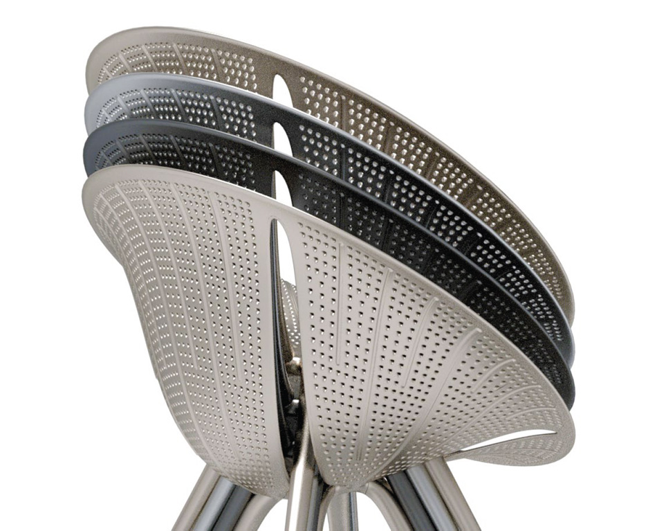 硅藻是一种可叠放的铝椅子,它的形状来自硅藻的截体,这是一种原始的单细胞生物,在世界各地的水体中发现了硅骨架。在三维空间中,精细的装饰几何学,一个由探索数学规则而设计的奇迹,它支配着生物的营养发展。生产采用汽车行业发展的技术,降低了座椅的重量和生产成本;压铸铝板保证了最轻的重量,消除了对钢材的需求,同时保证了同等水平的性能。