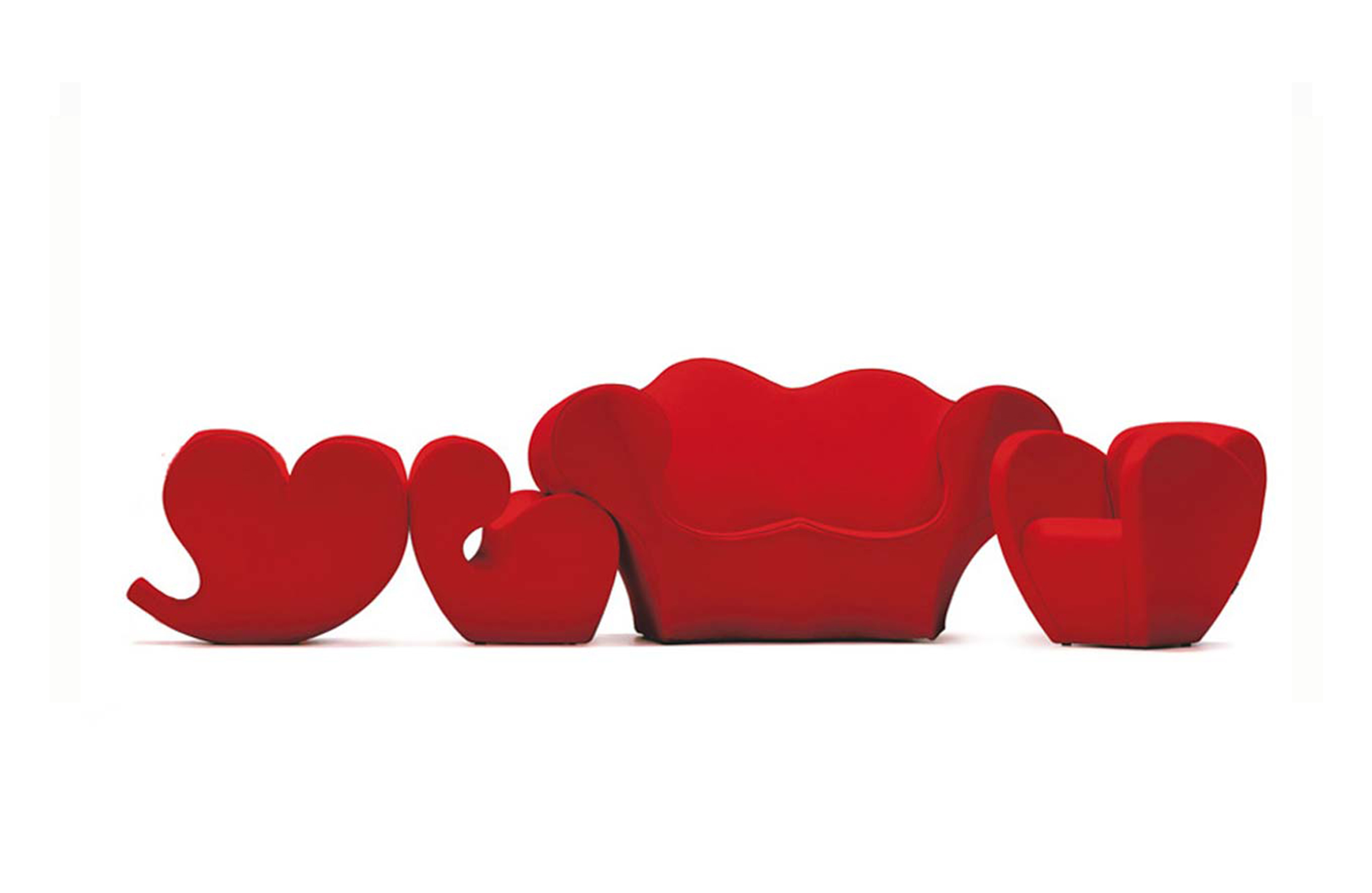 由Ron Arad在1988年设计的一个大的简单的钢椅,展示了一种简单的形式,可以在不影响设计原则的情况下,通过对材料和生产过程的重新解释而被翻译。从建设性的姿态获得的模型变成了工业生产;视觉的柔软和丰满的体积,舒适。更容易探索旋转模制和聚乙烯的使用;在冷泡中柔软的版本,用聚酯纤维包覆,触觉表面的转换;在元素的集合中,形态学和动态形式。
