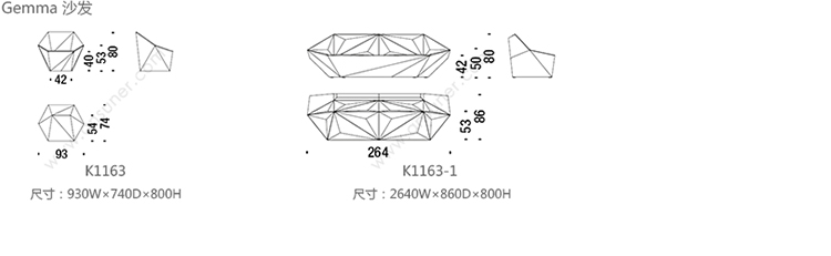 Gemma系列是围绕着对比和经验的概念发展而来的。立体几何的强烈不对称与室内装饰的柔软性形成了鲜明的对比。这个多面的侧面让人想起了珍贵的宝石和15世纪意大利挂毯的典型组合。这个集合代表了Libeskind的复杂几何图形和Moroso的著名专家之间的协同作用。