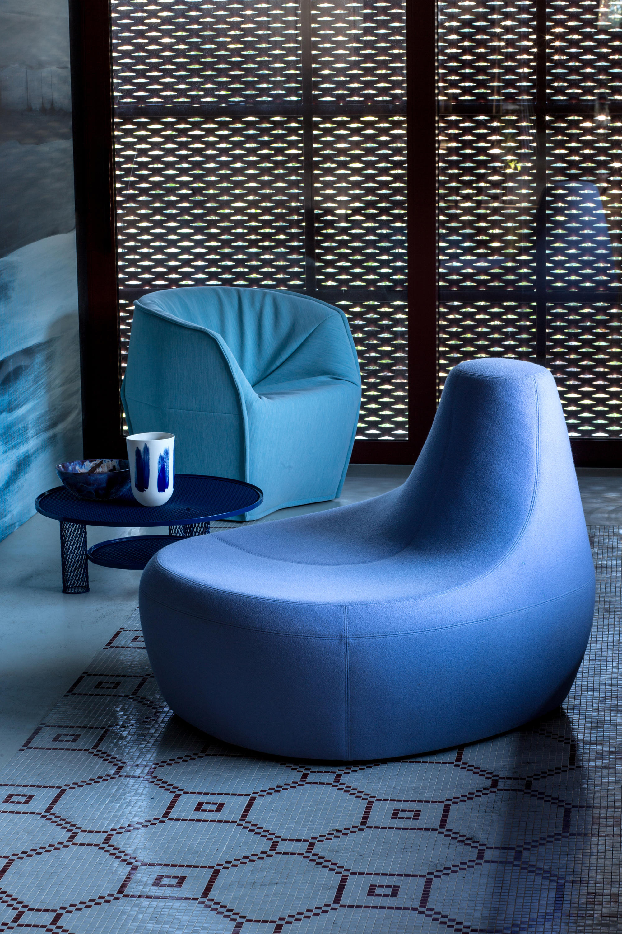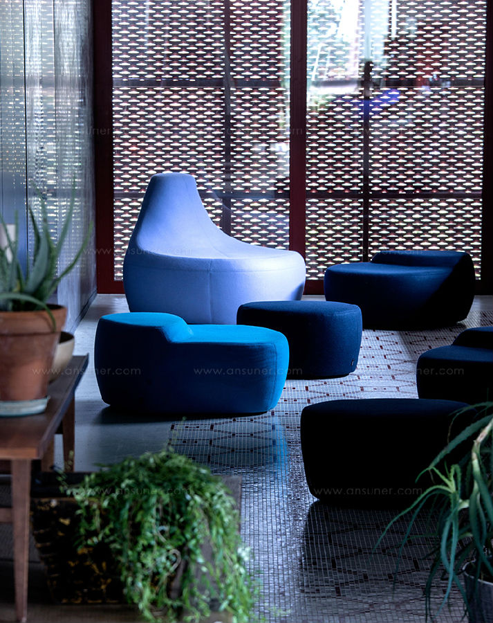第一个Saruyama,它的地貌形态,一个非常抒情的物体,是由三个模块组成的,它们结合在一起,形成一个巨大的圆形岛屿,不同的一个从另一个中提出对座位的自由诠释。