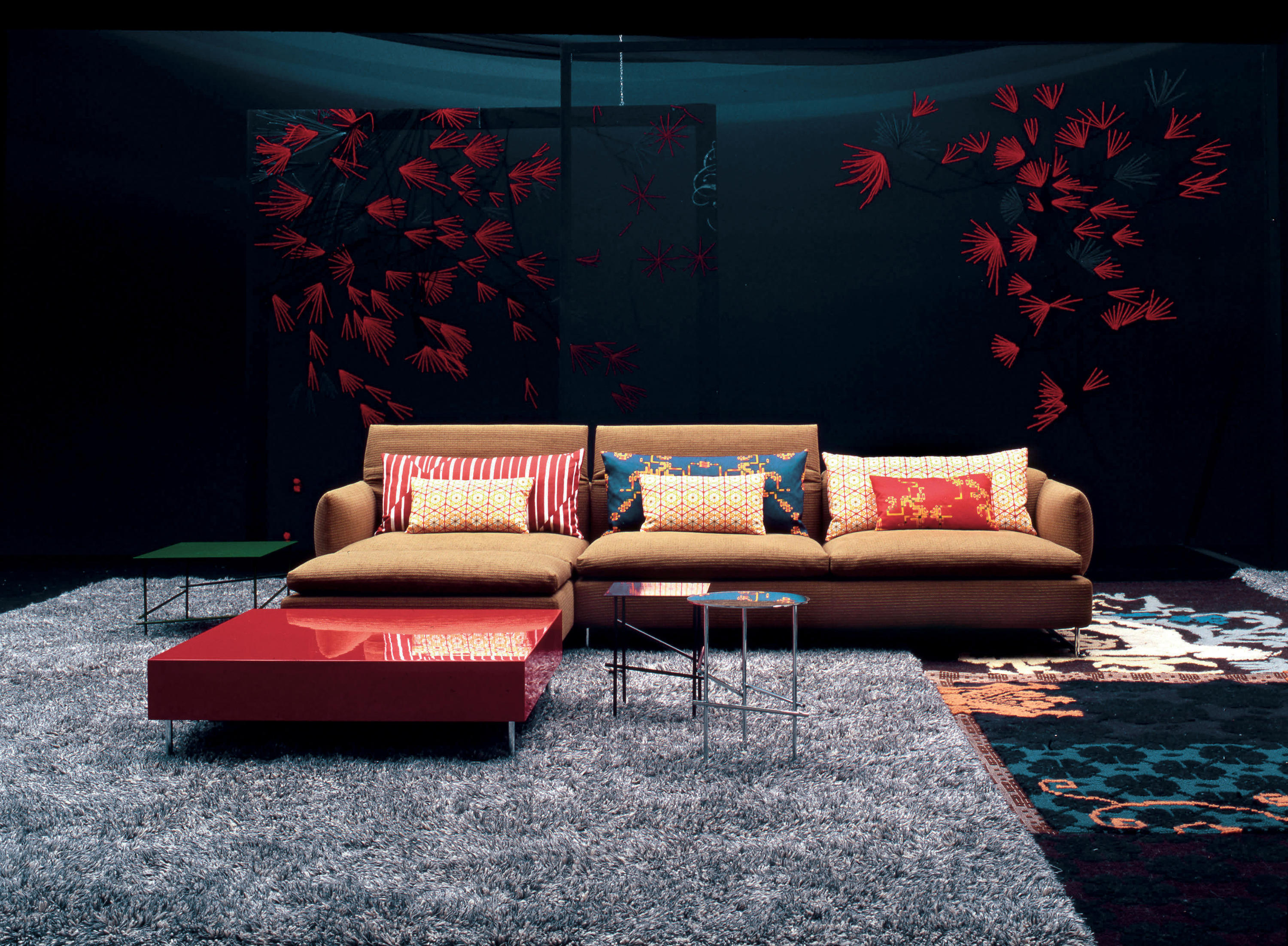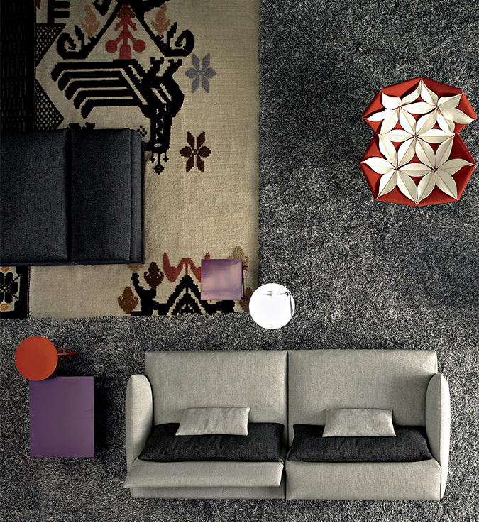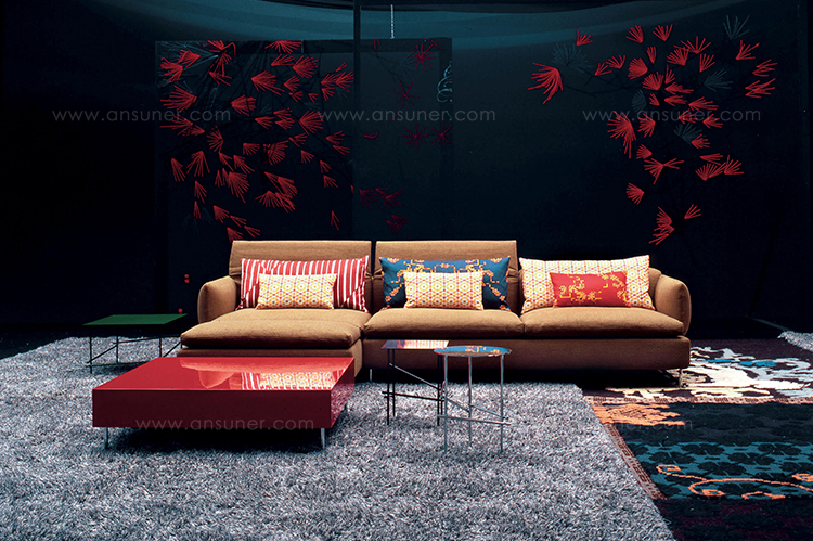 精致而舒适,低调奢华,略带东方风情。在标准位置时简单、最小;当靠背有倾斜的机制时,超级舒适。彩钢或黑色的彩管腿让人联想到用来演奏米卡多(或称“上海”意大利语)的彩色木棒。舒适是一种内在的特性,它是通过在干净的、中性的色调中舒适地垫在座椅靠垫上实现的,这种色调与在梅花、翠绿、红辣椒和漆红色中所提供的洒垫和涂漆的边桌所提供的色彩形成了完美的对比。