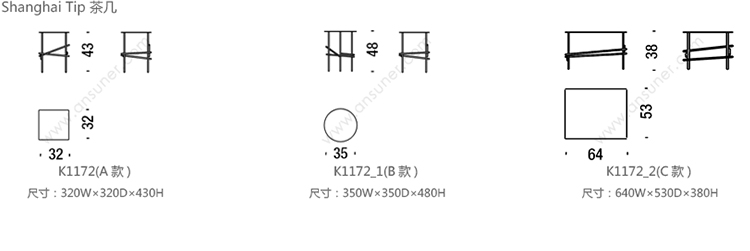 Shanghai Tip 茶几 系列尺寸/示意图