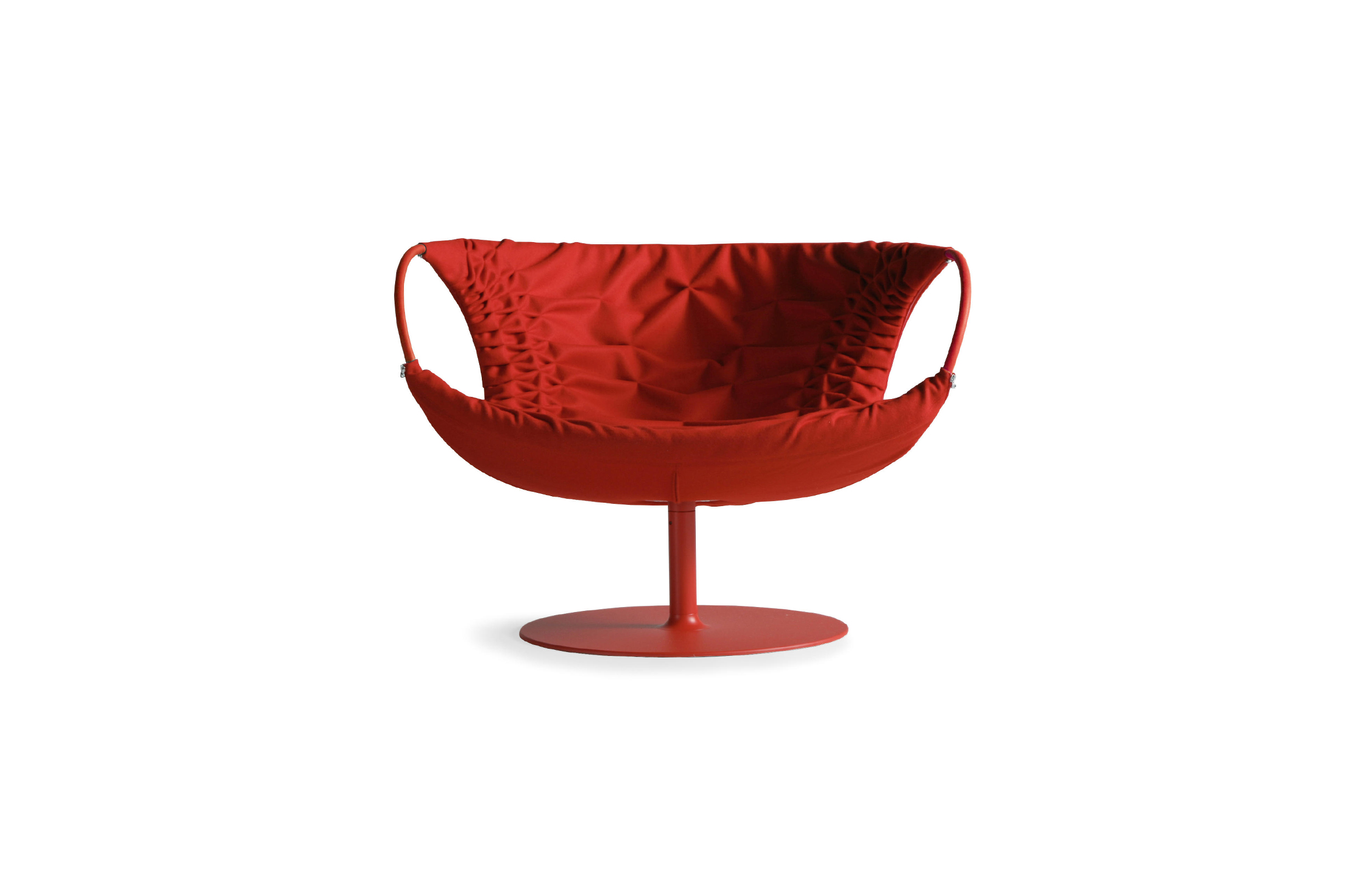 采用经典的刺绣花样,再将它翻过来。将工艺和工业加工结合起来,扩大想象力,创造出一种时尚的、精致的作品,融入到具有象征意义的女性世界中。展开它。两个环变成了扶手,类似于一个竹袋的简单风格;它的外壳有一种棒球手套的感觉,它是一个敞开的,随时可以进入的,舒适的安乐窝。边绣——在抽丝针的针法——使悬垂的现代风格呈现出来,给形体带来一种轻盈,给椅子带来一种经典时尚配饰的优雅和精致。