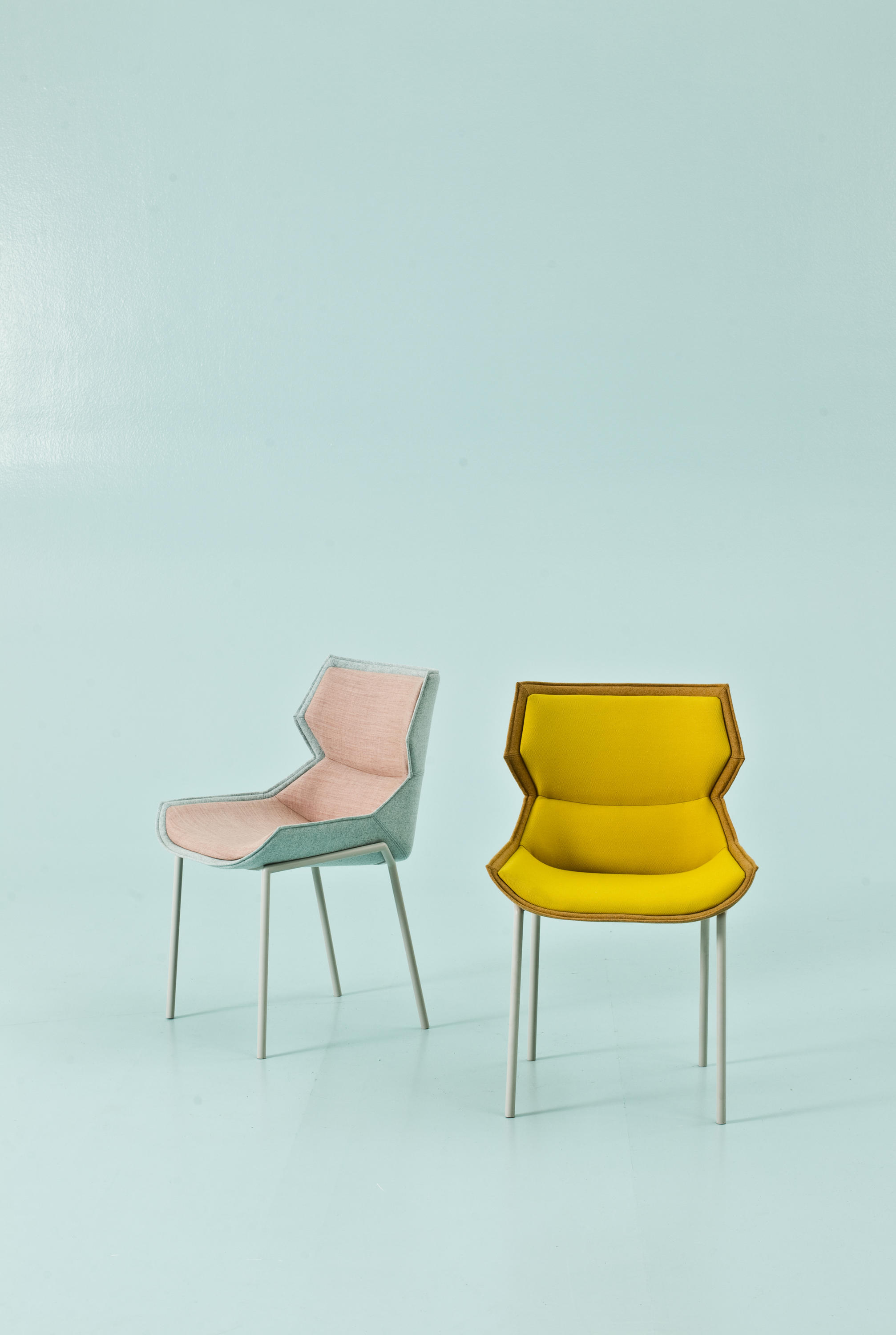 克拉丽莎(Clarissa)的扶手椅有一个独特的椅背,它拥抱了模特,并部分地用“兜帽”遮住了他们。它说的是一种双重语言:外部的几何图形,内部的柔软和舒适。金属管框架与外壳的干净、线性几何形状完美匹配,由热成型的聚酯纤维制成,与柔软而大方的垫座不一致。